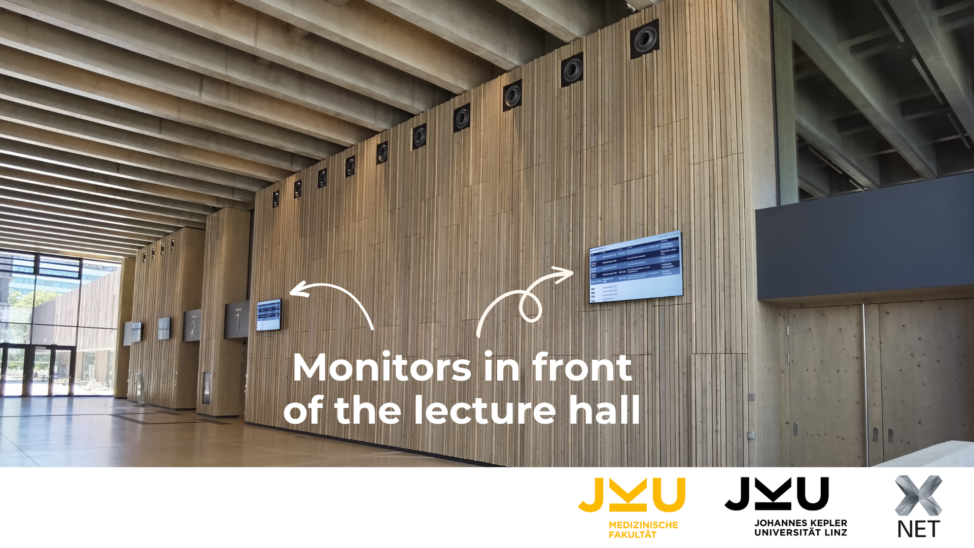 The benefit lies in the transparent and clear recording of attendance: this takes place when entering the room in which the course is held, on the display of the indoor unit 15 minutes before the start of the course at the earliest. Attendance can be recorded using a smartphone in combination with myJKU web application or the JKU Card. Students can immediately see and hear whether the registration was successful or an error occurred. Students can use the web portal to view their courses and schedules, check attendance, report absences, and submit substitute work for missed courses.